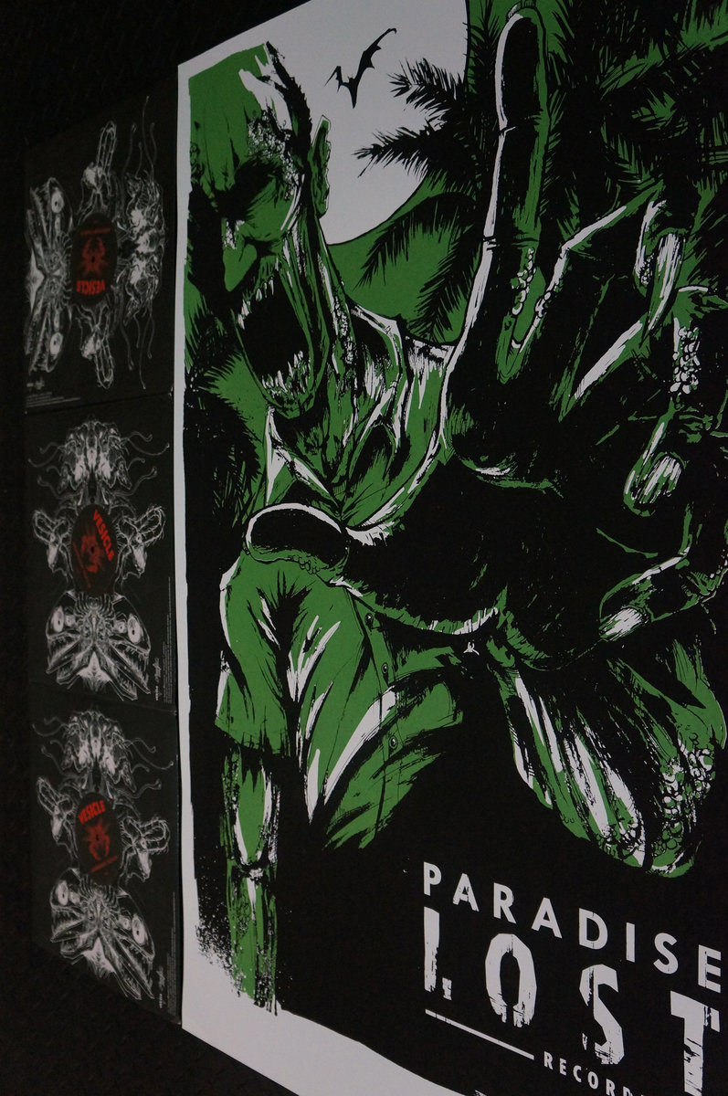 When there's no more room in hell, the dead will walk the earth.... Based on on a blend of Paradise Lost's dark spirit and the future Zombie Apocalypse, this limited-edition, hand-numbered, screen-printed poster (edition of only 45) on heavy stock French paper was designed by Finnish badman, Jaakko Karna, who is responsible for numerous Paradise Lost release artworks, including the Vesicle releases. Produced lovingly by the Ink Lounge in Denver, Colorado, we have some of these left over from our party in Berlin and we'd love for you to scare the hell out of your housemates by grabbing a copy!