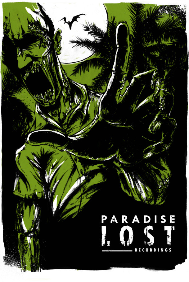 We'll throw in a free download code of our "5 Years of Paradise Lost Recordings" release, with 17 of our best tracks, for free with this. What a deal. Shipping in the US only on this edition. For Europeans and other, we will offer this poster as a separate product because of differing shipping rates, so look on the merchandise site for the proper location for where you live, but we're smart enough to have a stash of posters in both the US and Europe!